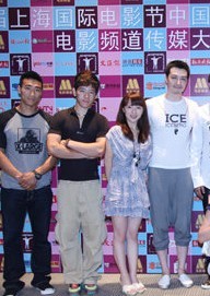 我校10级导演专业学生原珺,曾在中央电视台少儿频道《疯丫头》中饰演婷婷一角,去年又在电影《玩酷青春》中成功出演徐炎一角。图为原珺随《玩酷青春》的剧组,参加第十四届上海国际电影节时的情景。(左三为原珺)