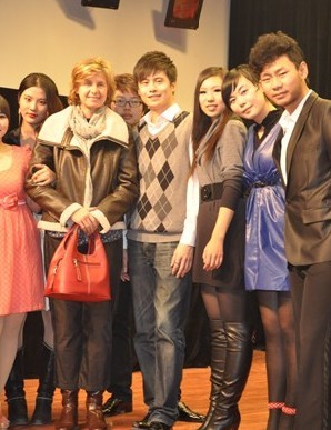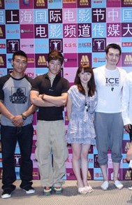 我校10级导演专业学生原珺,曾在中央电视台少儿频道《疯丫头》中饰演婷婷一角,去年又在电影《玩酷青春》中成功出演徐炎一角。图为原珺随《玩酷青春》的剧组,参加第十四届上海国际电影节时的情景。(左三为原珺)